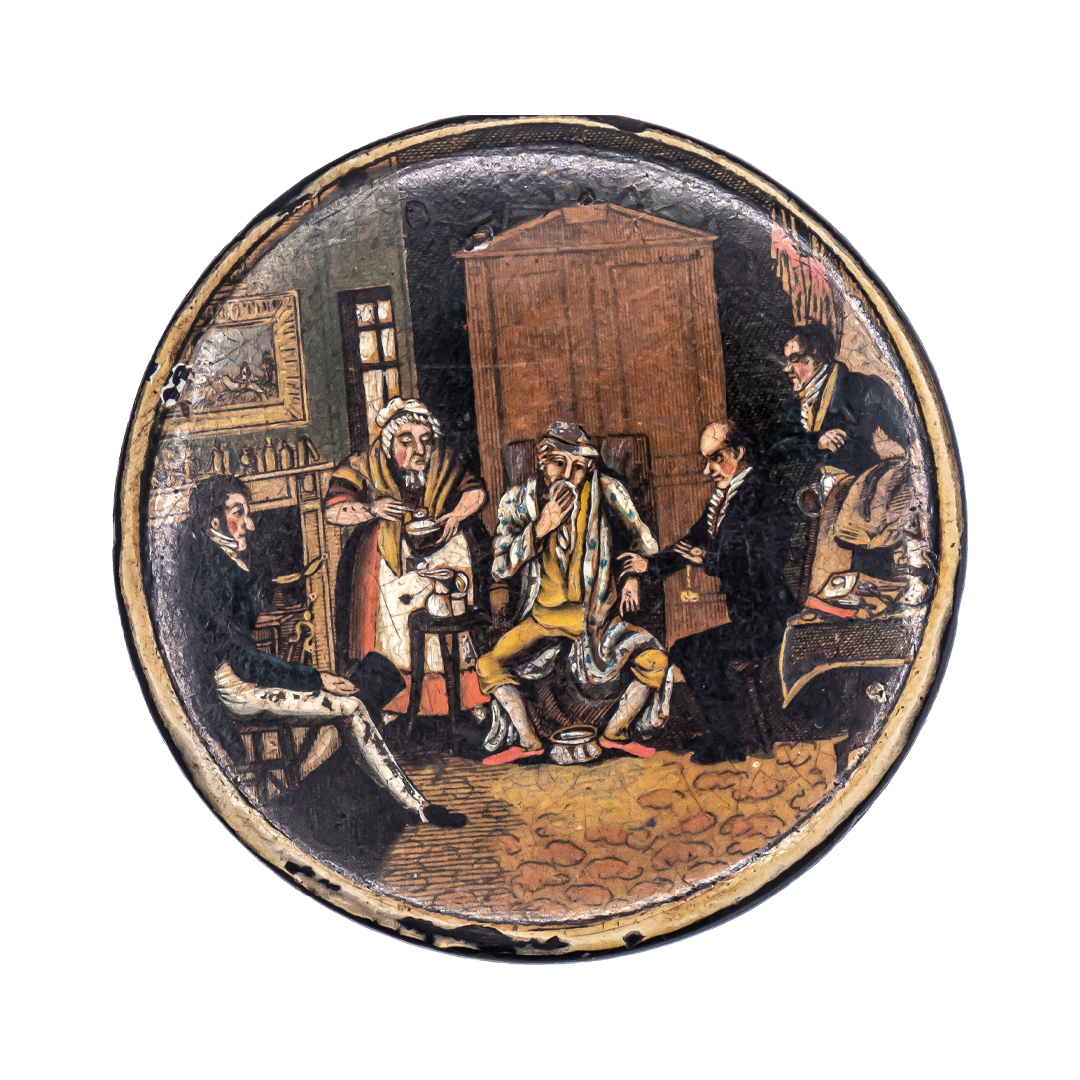 Museum de Dorpsdokter bezit een alleraardigst schilderijtje waarop we de dorpsdokter van vroeger aan het werk zien. Een dokter haast zich met gebogen schouders naar het huis aan het einde van een zandpad.