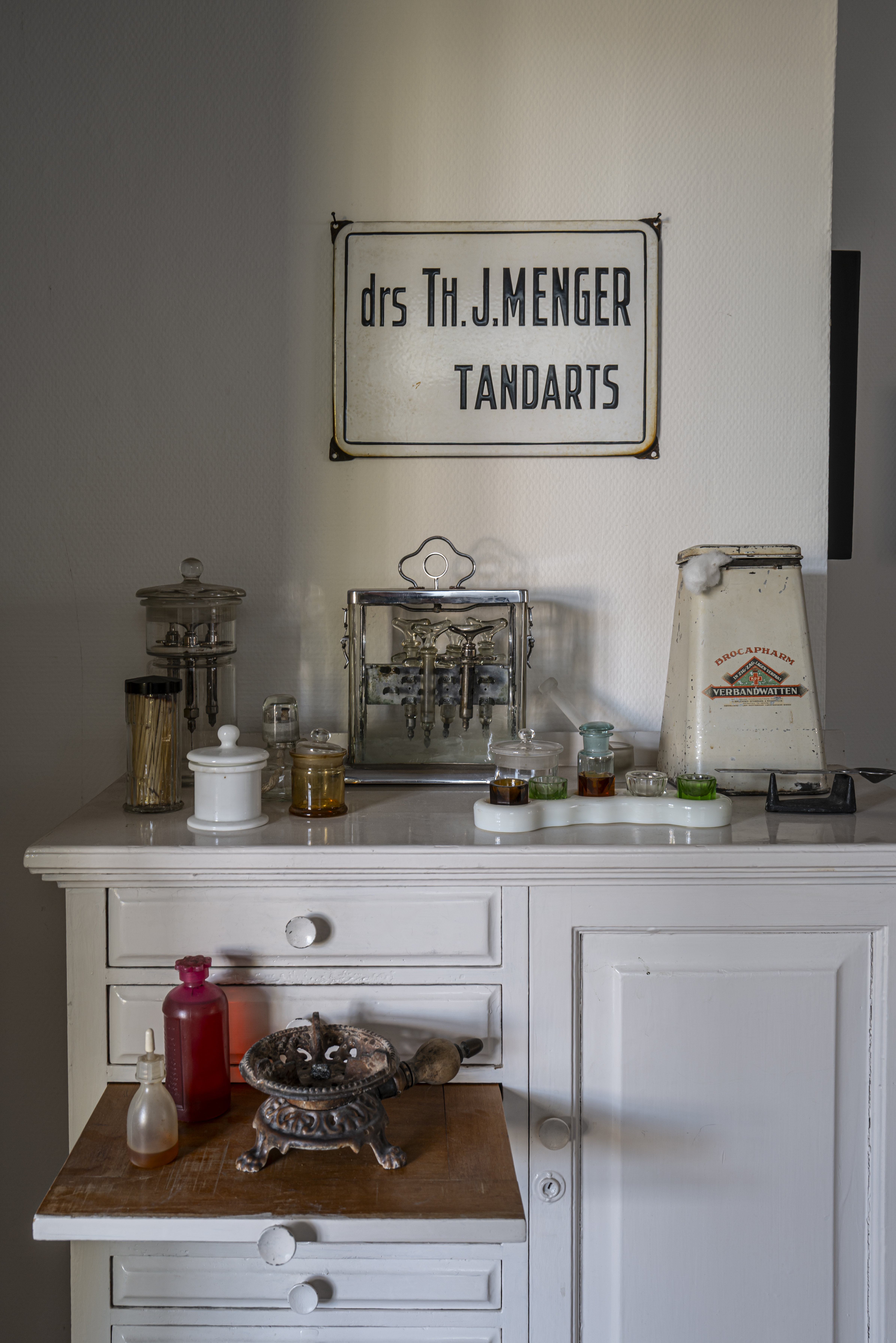 Heel lang bleef op het platteland het trekken van kiezen en tanden het werk van de huisarts. Dat deed hij voor een bedrag van één gulden per tand of kies. In Hilvarenbeek vestigde de eerste tandarts zich pas na 1960. Hoewel vanaf de 19e eeuw patiënten met lachgas goed konden worden verdoofd, gebruikte de dorpsdokter doorgaans de kruidnageltang. Een bezoeker van ons museum vertelde dat zelfs lang na de Tweede Wereldoorlog hij bij een wortelkanaalbehandeling kruidnagelsap mee naar huis kreeg ter verdoving